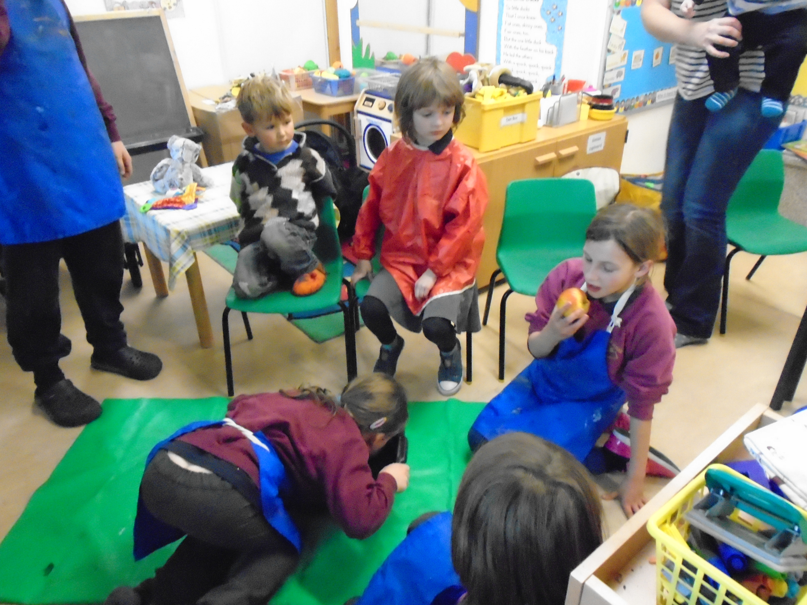 At school for Halloween we made scary pizza, dunked for apples Maggie got her apple the fast, played monster bingo and ate alien jelly who Tatghan and Miss Carr made we also played with the puppets and made a small puppet show. I thought it was great fun!