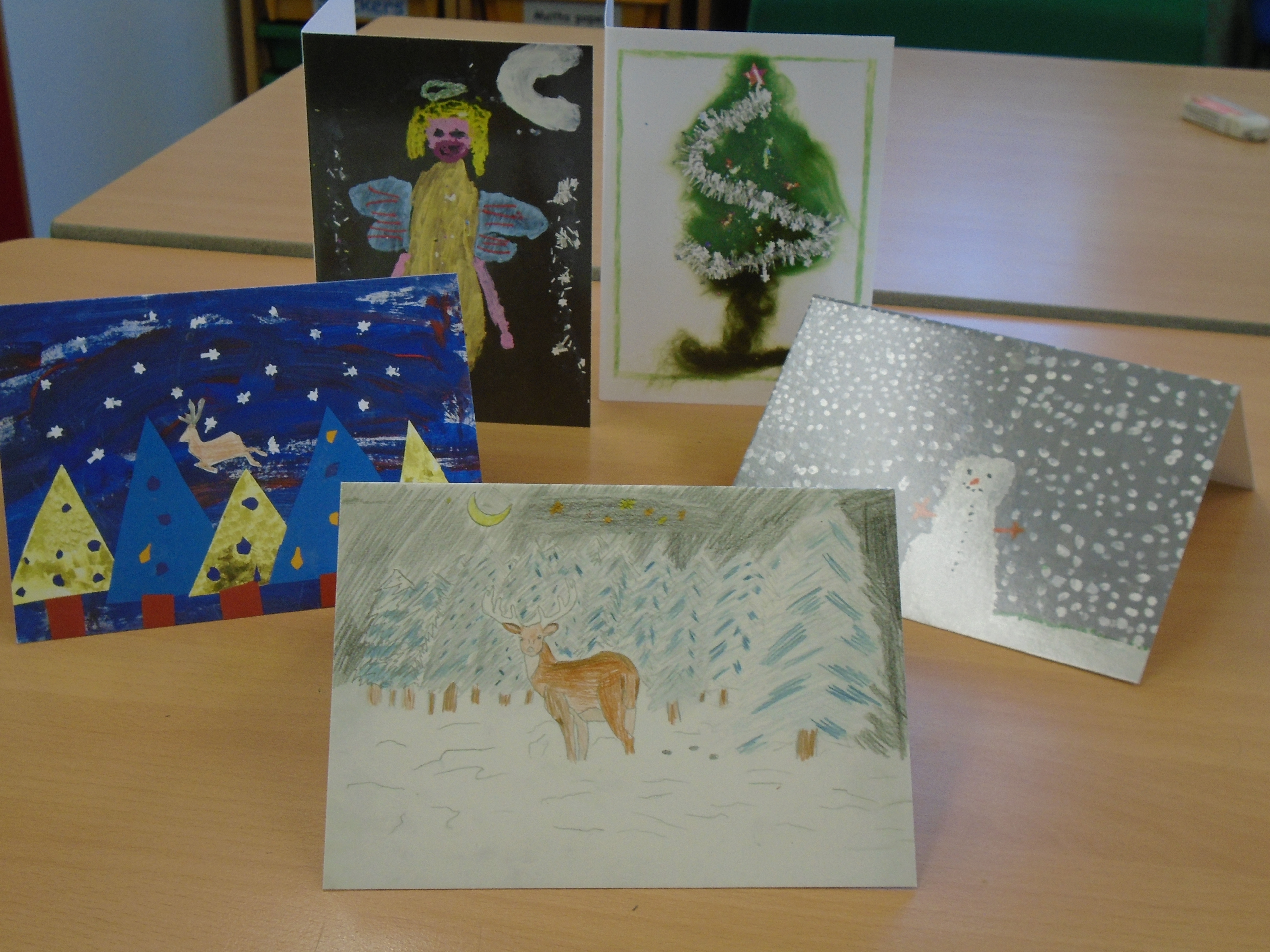 As part of our enterprise project we made Christmas cards in art and entered the Lochaber Housing Christmas card competition. Although we didn’t win we did get a commendation and £25 for the school. We had our pictures made into cards to sell. We made quite a lot of money.