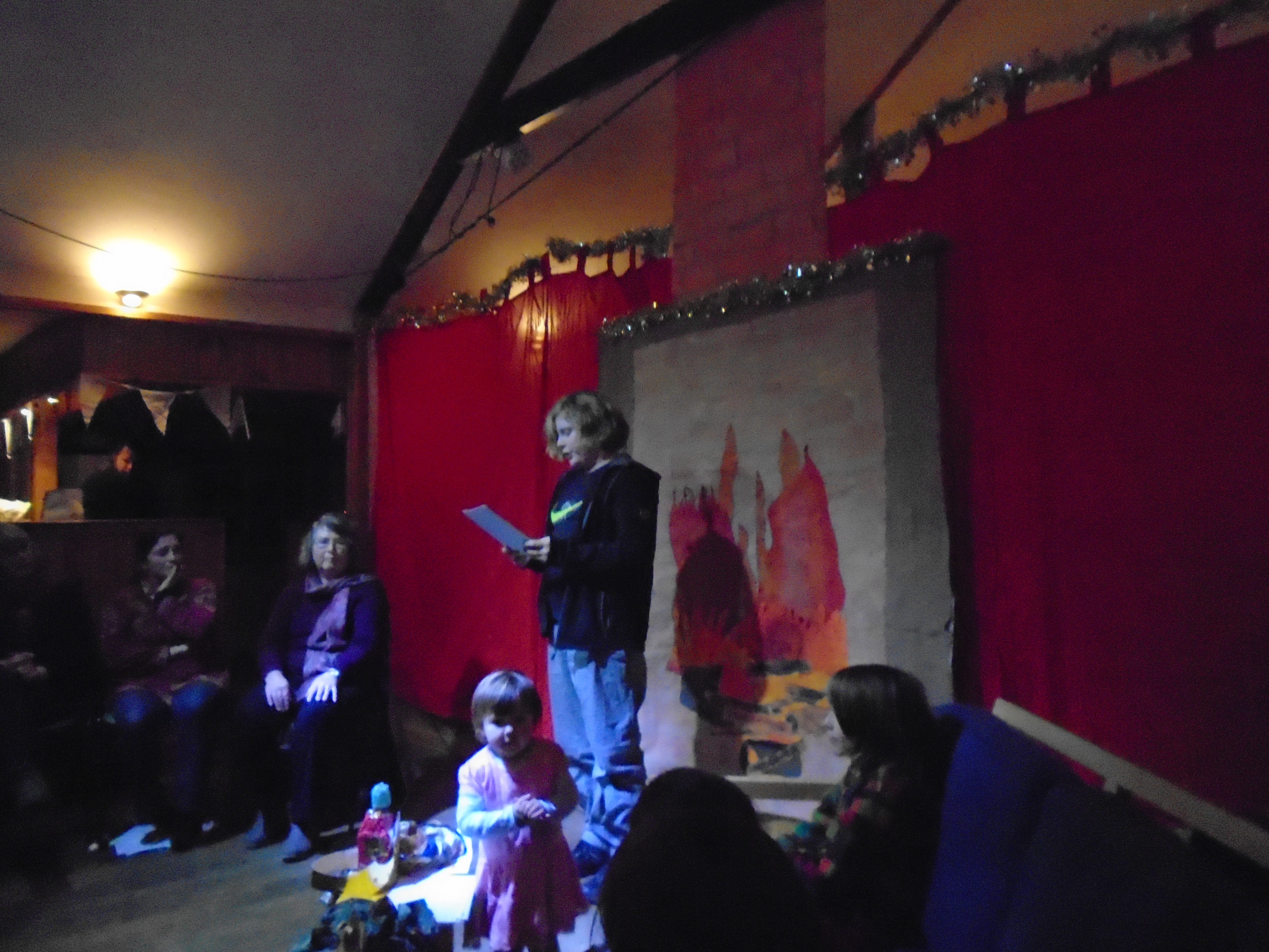 We told stories called ‘The Raven’ and ‘The Snowman’. Eigg Ceilidh Band played a Virginia Reel and we danced. The Eigg Singing Group sang ‘Mistletoe’, ‘We shall Overcome’ and a reindeer calling song. Mrs Ib read ‘Chocolate Cake’ and Eigg Primary School performed ‘The Star Watchers Journey.’ Maise played ‘Fairy Lullaby’ and Maggie sang’ Ha mi Skith.’ Everyone sang carols and we had mulled wine and mince pies.