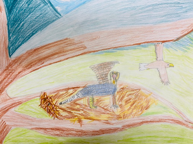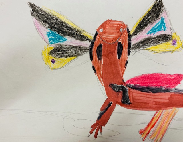 Last week we made some drawings of dragons. A lady called Kate met with us online and told us about her job drawing animals to illustrate books. Her job is an illustrator.
