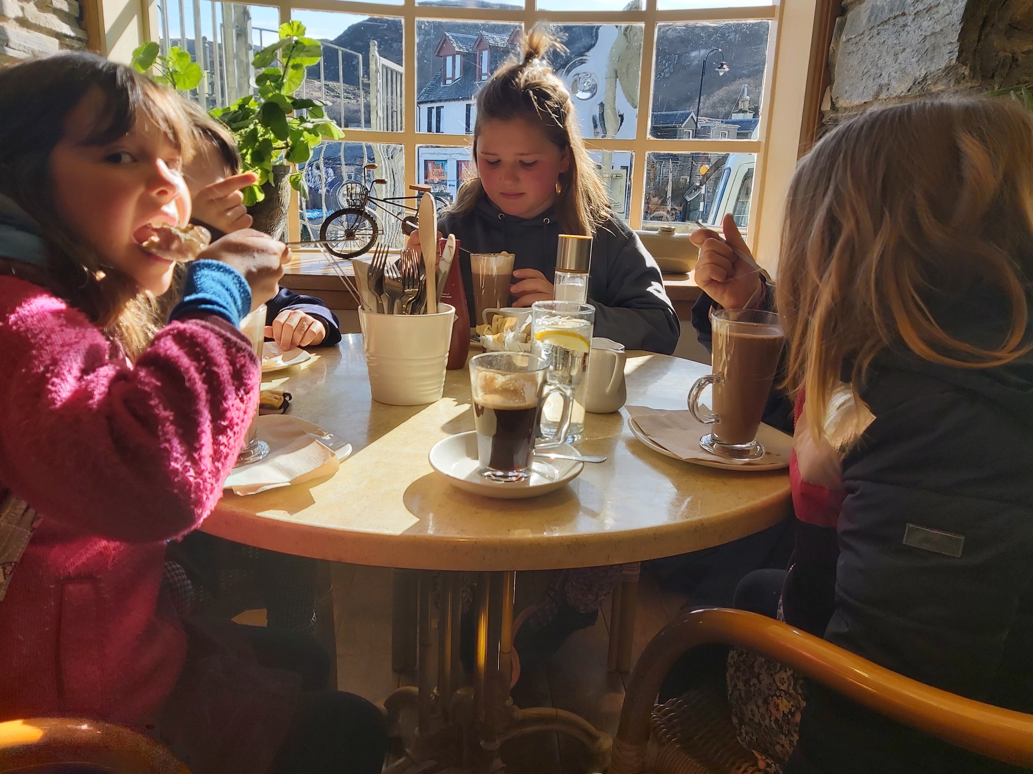 We had breakfast and made lunch and then we did some reading and played a game of chess with Hugh (again!). We then went to the hall and played a game with 3 teams which had 3 people in each team. Each corner had a different task. One was trying to kick the ball as many times as you can, the other was hiting the ball with the shinty stick and the other was getting a basket ball over a bench and bouncing a ball with a tennis racket. It was fun and exhausting! π I forgot my jacket so had to collect it there. We then had lunch and me, Hugh and Alex and Oscar along with Ms B went to get a hot chocolate and it was lovely. After that we went to the Toy Shop while others went dancing. Then me, Hugh and Tara went to a modern dance class in the hall. We did a bit more reading and went to bed.
