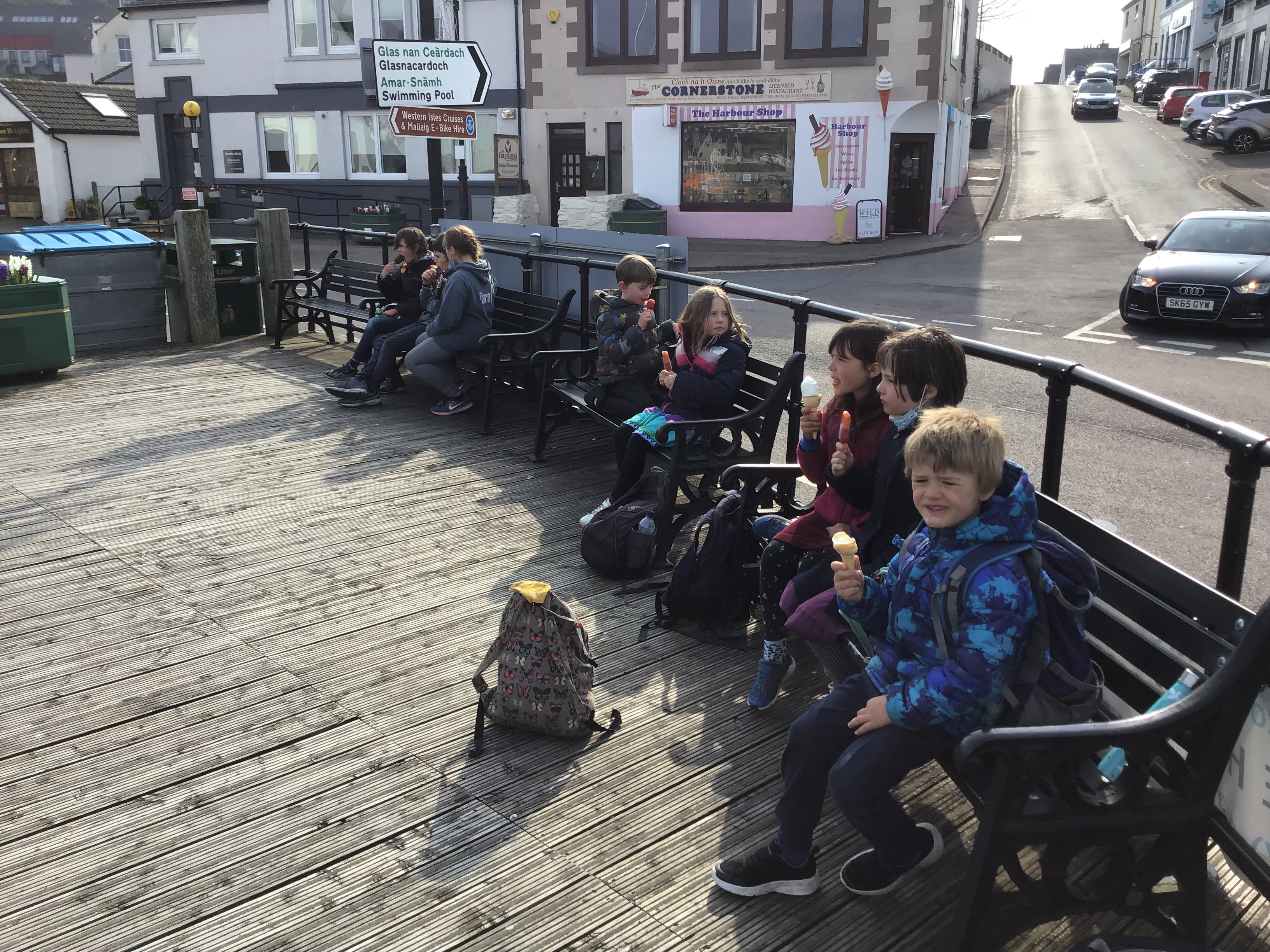 We went to school as normal and then in the afternoon and we met with the Muck children and we went home early. We collected our luggage and headed for the pier to get the boat to Mallaig. It was a very long boat trip and when we got to Mallaig we split into three groups for our accommodation. I was with Hugh, Oscar, Alex and Ms B. Freya was with Agnes, Violet, Tara, Amanda and Mrs Hollands and in the final group Arlo, Sarah, Ness and Mr Merrick. That evening myself and Hugh had a very long game of cards. It lasted a LOOONG time because we showed each other different card games and then we went to sleep.