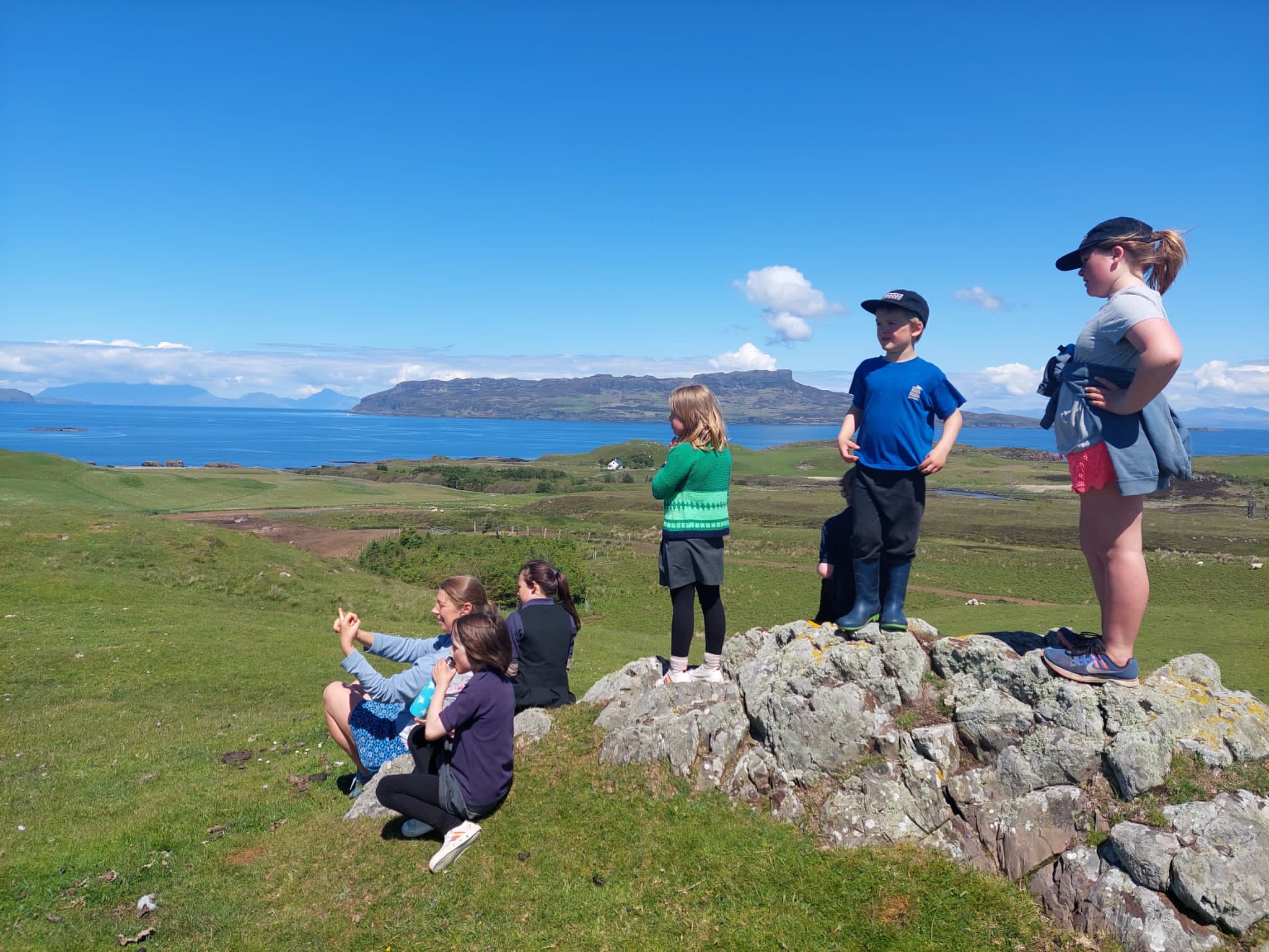 We all went on the Shearwater boat to Muck in the morning and on the way there we saw a minke whale and porpoise. There were loads of them and they went under the boat. It was so cool. We then made it to Muck. We met the other Muck children and we went to their school and we played outside. We saw a sea eagle fly past the school. It was amazing!