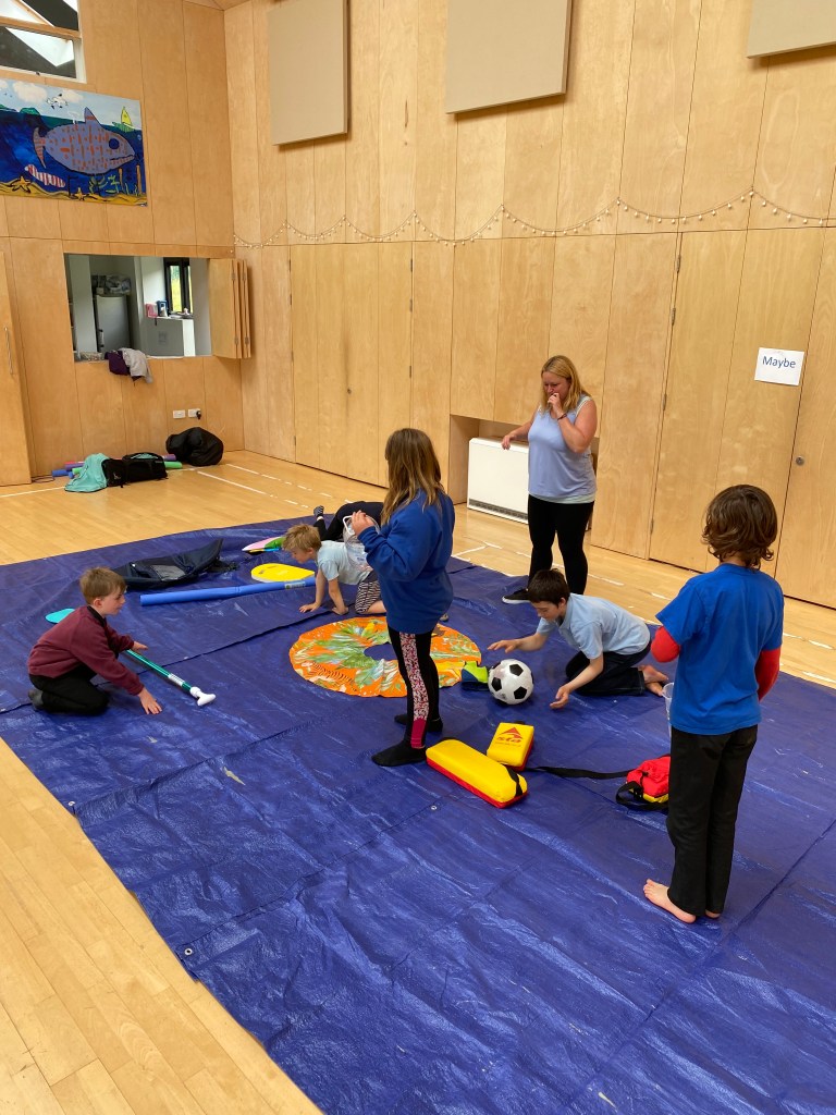 Then we had to leave the hall and when the women came back she said she had flooded the hall but actually she had put down a blue sheet that was meant to be the sea water.