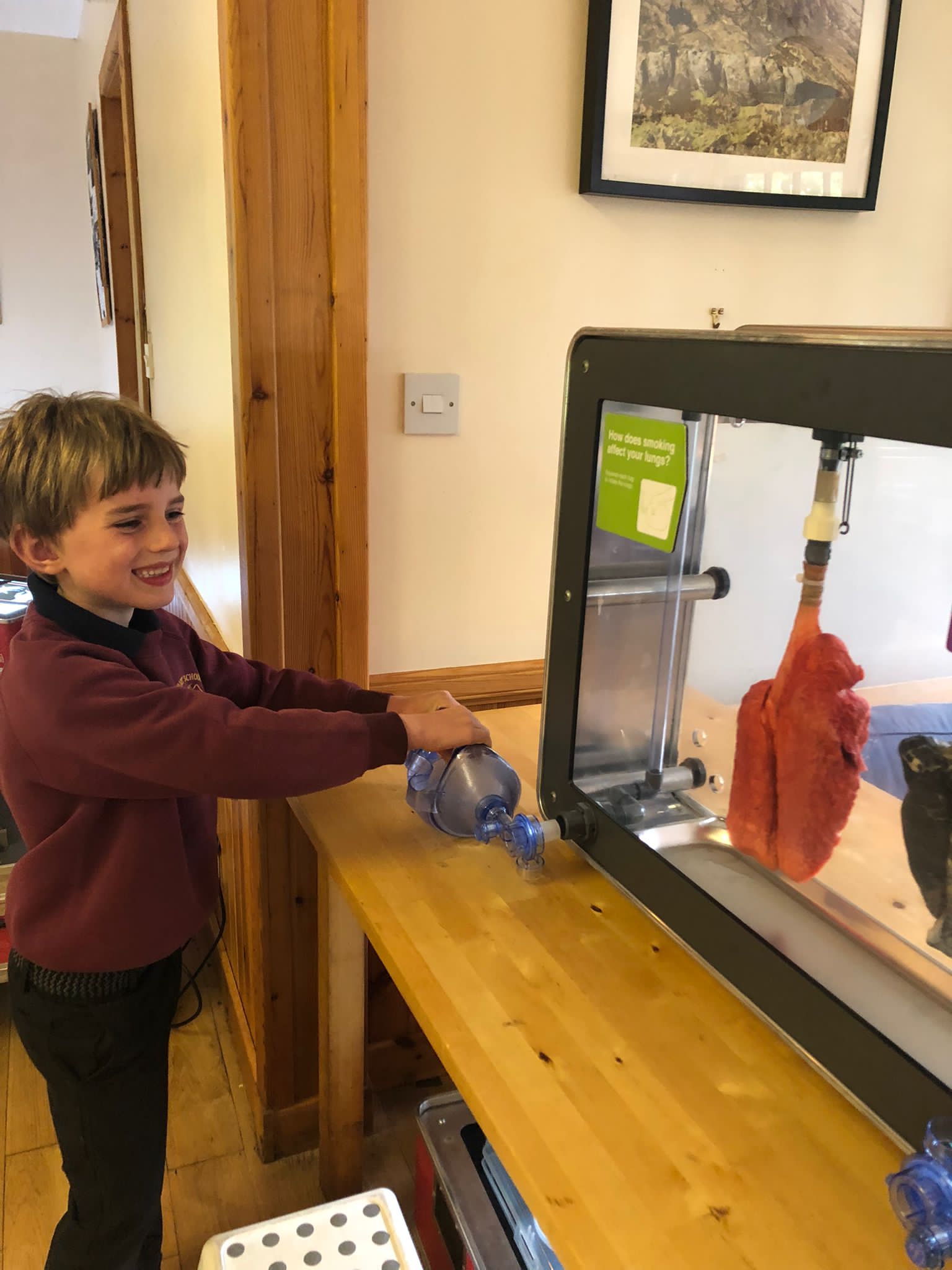 They showed us a heat scan of a body and it showed where it was hot and cold. If it was white it was really hot, red was a bit hot and dark red was cold. We played a game like Operation Game where you had to put the right organ in the right place on the body. They also showed us some lunges that belonged to a pig! One was black from too much smoking and the other one was healthy and good. Finally we played a game where you had to press the buttons that light up and copy the order. Tara was good at that one.