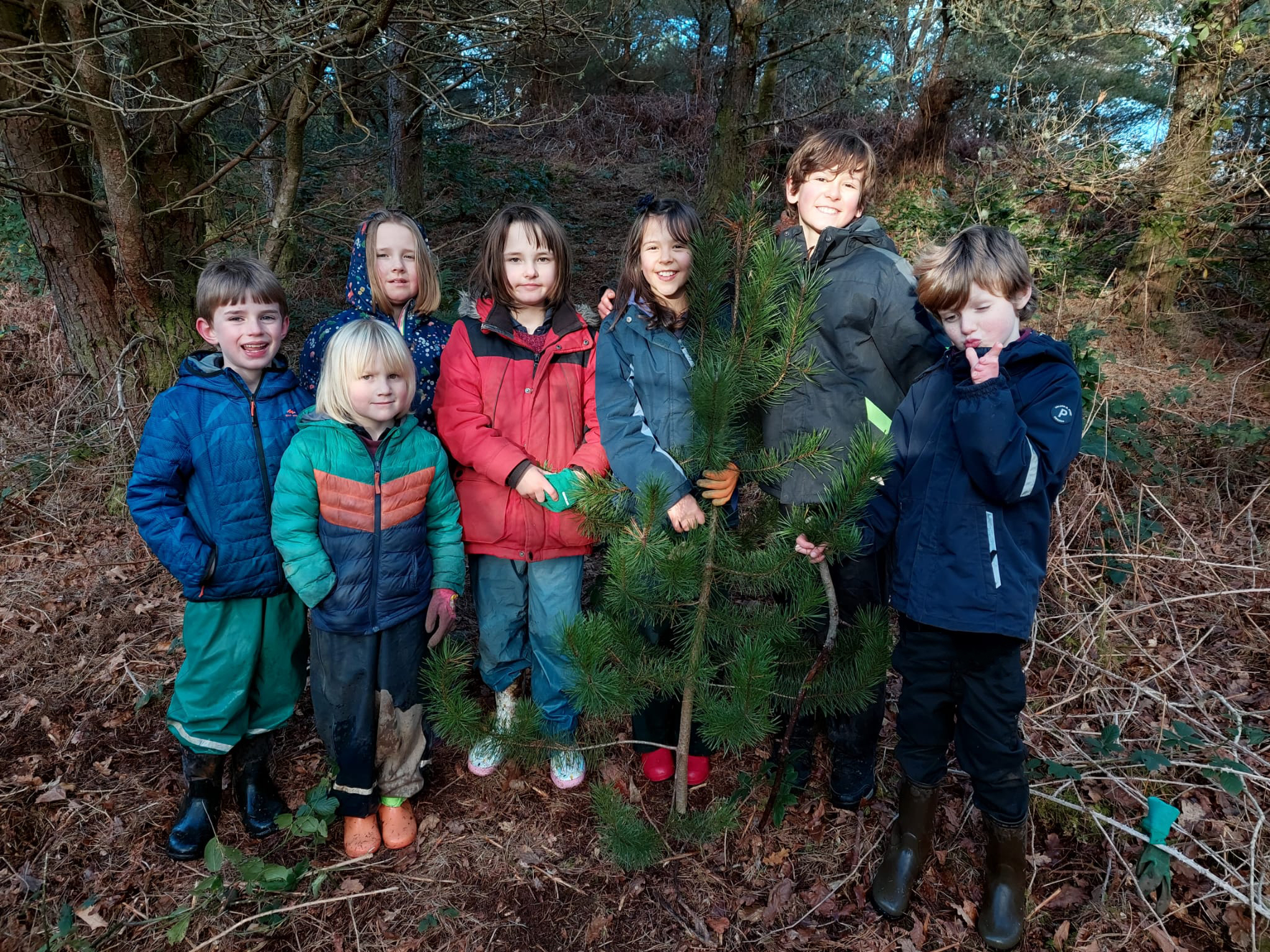 We crossed the road then we went into the forestry and we searched and searched for the perfect Christmas Tree for our school. Tadhgan found the one but the girls had concerns. They thought they had found one better but it wasn’t the one! The one that Tadhgan found was more full and then we all decided that it was THE ONE!