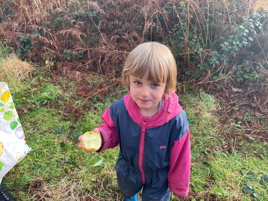 When we arrived at the orchard we gathered by the shed and we spoke about safety. We had to make sure that we don’t fall into the brambles. There was a specific path to the school trees. We turn right at the shed.