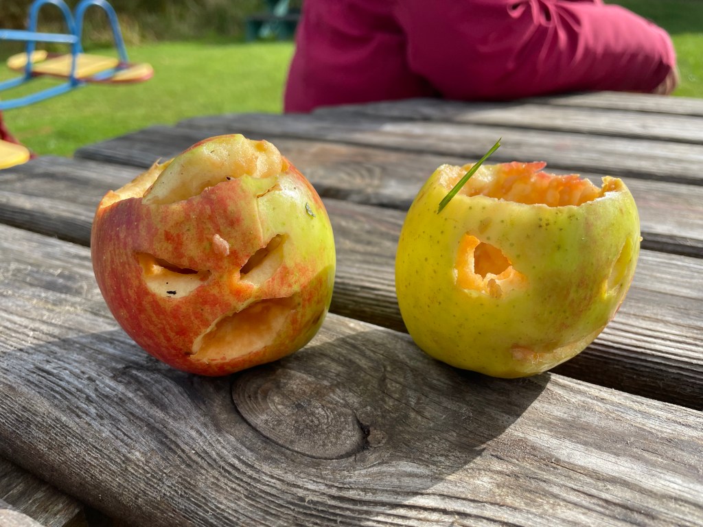 When we got back to the school we made Jack’o Lanterns out of some of the apples.