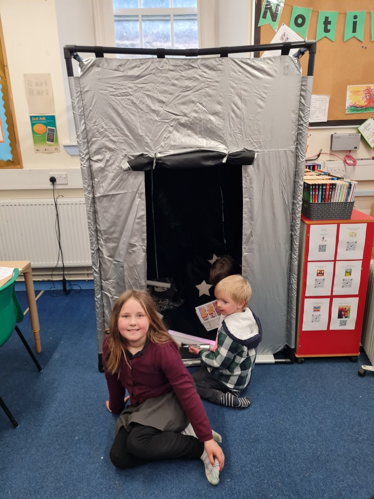 The new classroom is really fun and as soon as we got there we were exploring it for ages. There is this really big new lovely tent. It’s for calming time.