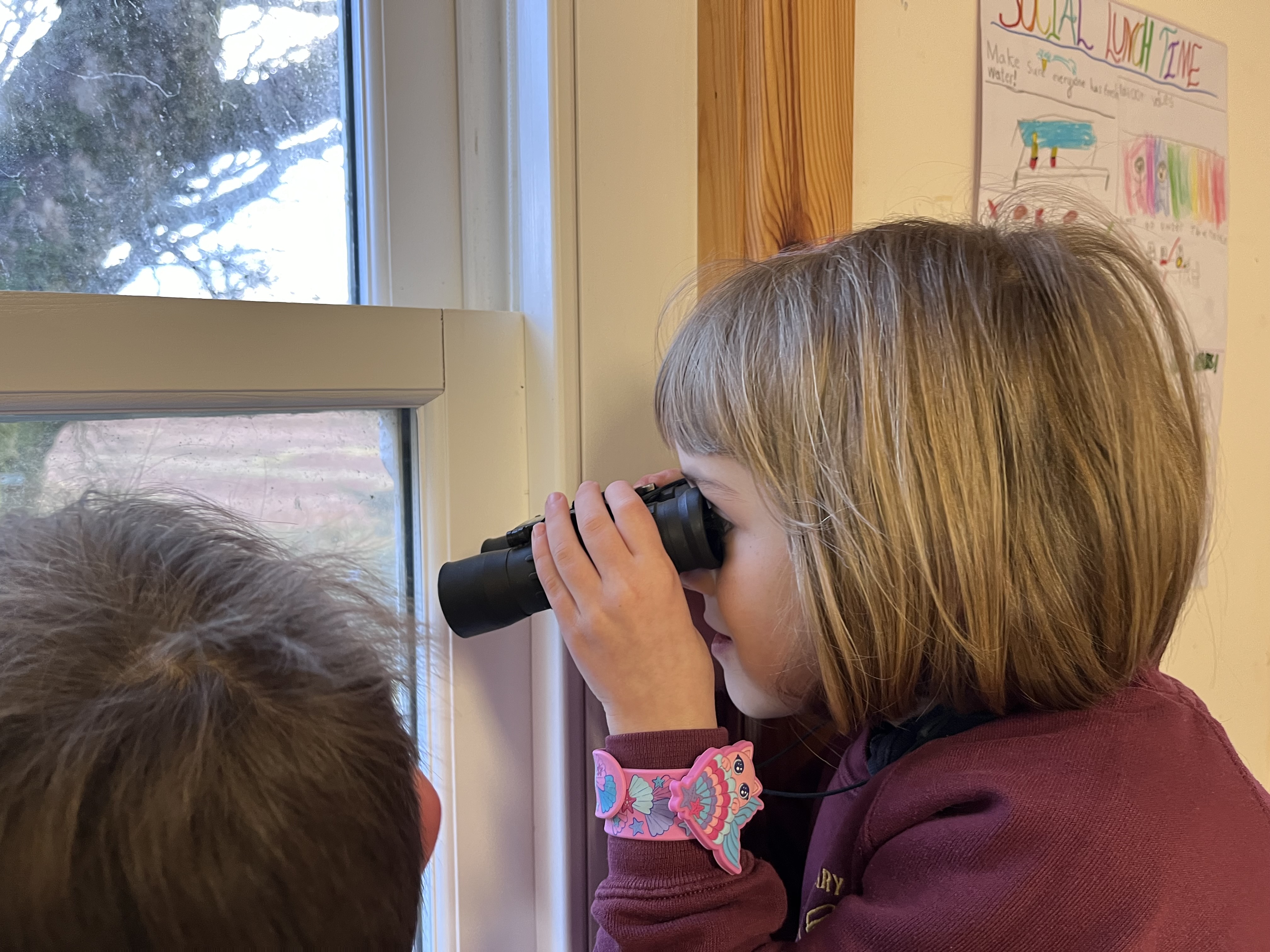 We used binoculars to look at the birds. At the end of it, we told each other how many birds we spotted. And then we added it together.