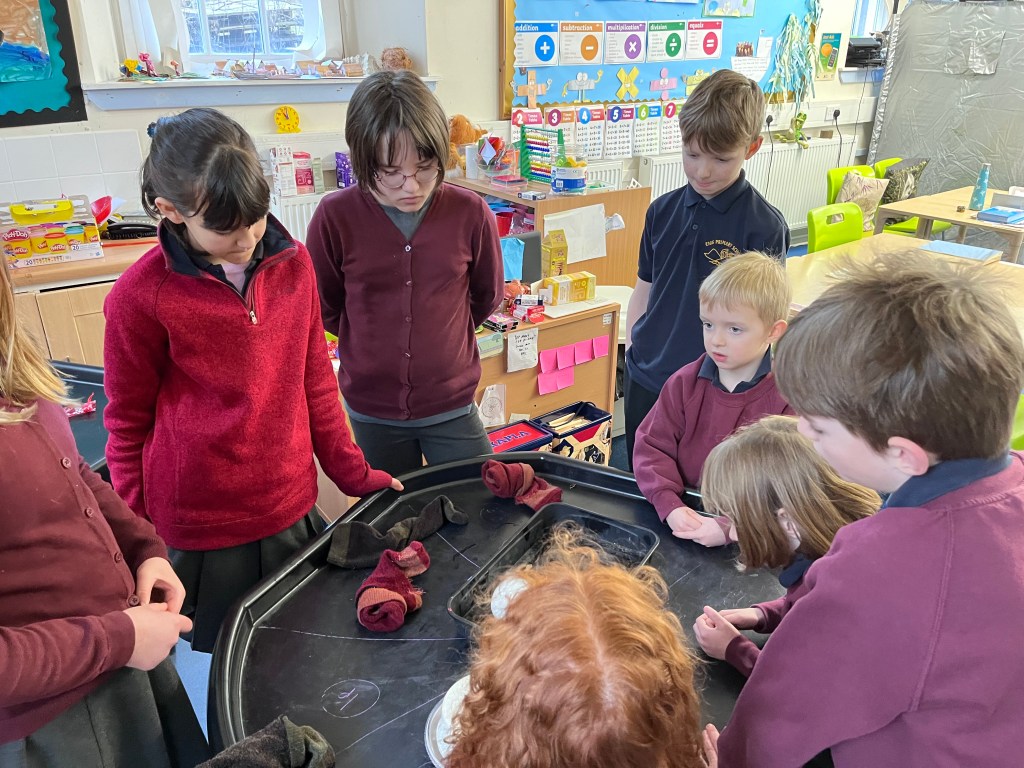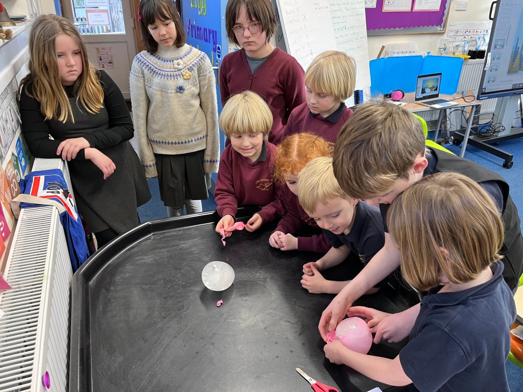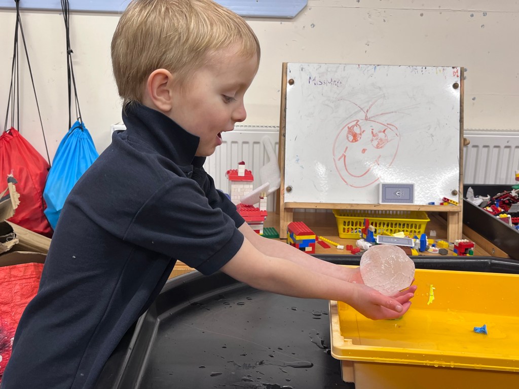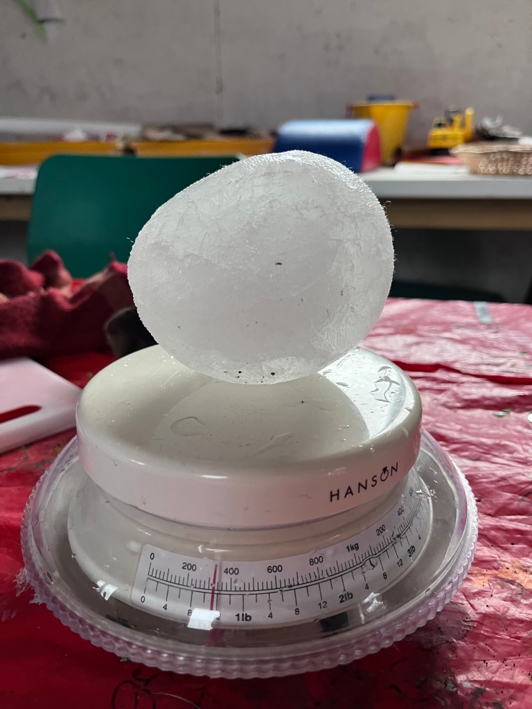 The next day we checked if they melted and we wanted to see if they lasted the weekend. Some of them lasted the weekend. I think Colm’s, Agnes’ and Freya’s lasted the weekend. I think they got the best materials. Colm got every material and stuffed it in a box and put his ice ball in. Freya and Agnes got some wool lining.
