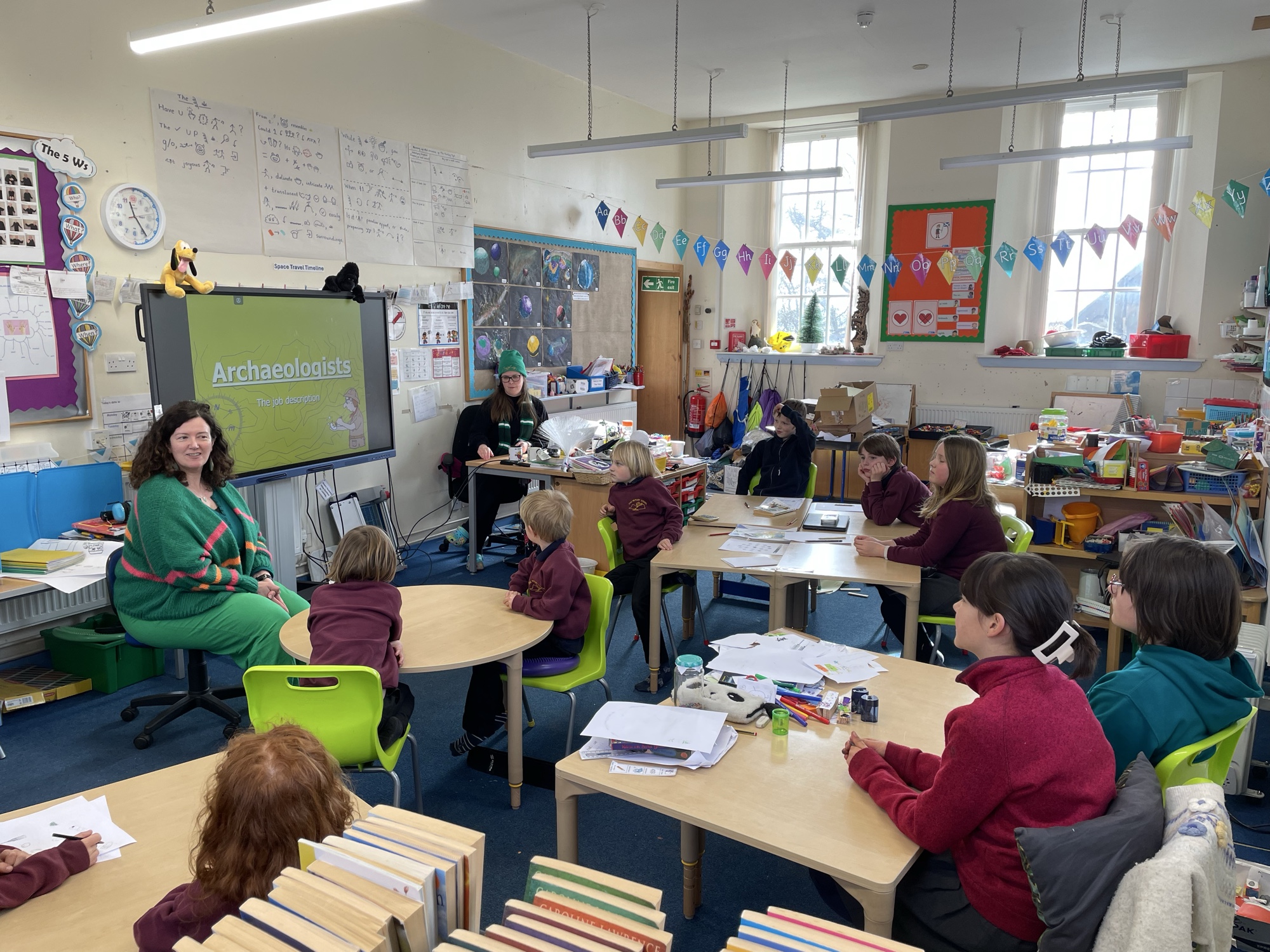 Labhaoise was talking about archaeogogists and it was very fun. She was swimming under water and she found some interesting thing. She found a big hole, there were tubes going down and then all the bits that were down there, was trees, sand, wood. And while she was diving, she thought she heard a bird but it was actually an Orca. Orcas are also called killer whales, they are very cool. And there is this machine that finds things under ground. All archaeologists use that machine. Archaeologists do great work because they find interesting things that they can look at.