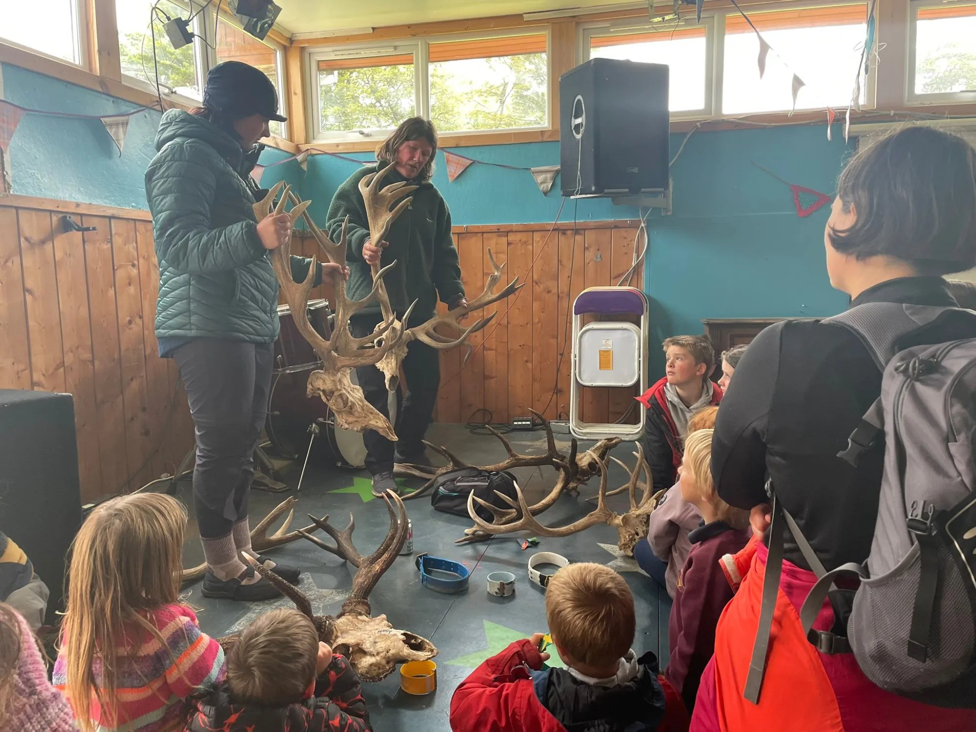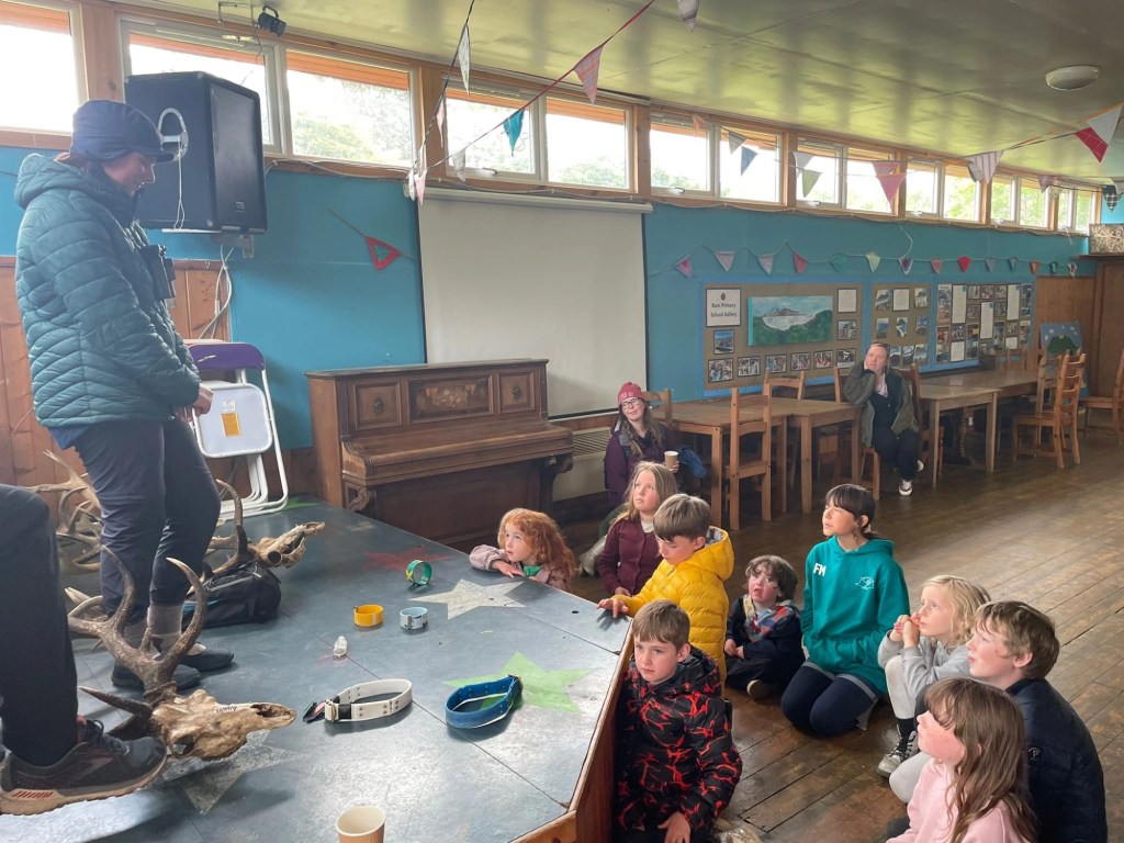 Afterwards, we gathered in the community hall for a final workshop with Ali from NatureScot, who delivered a hands-on deer research session. Using real antlers, tracking props and field tools, Ali brought Rùm’s red deer story to life – a perfect way to round off a week full of learning about our islands’ landscapes and wildlife.