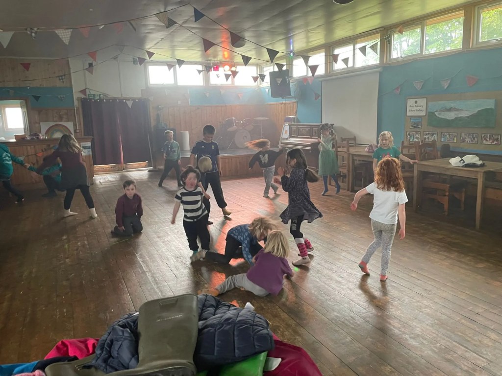 After arriving back on Rùm, we got a tour of Rùm Primary School, led by the pupils themselves. We were shown around the classrooms, shared spaces and displays – a proud moment for the Rùm children, who loved being able to share their school and their learning with their friends from the other islands.