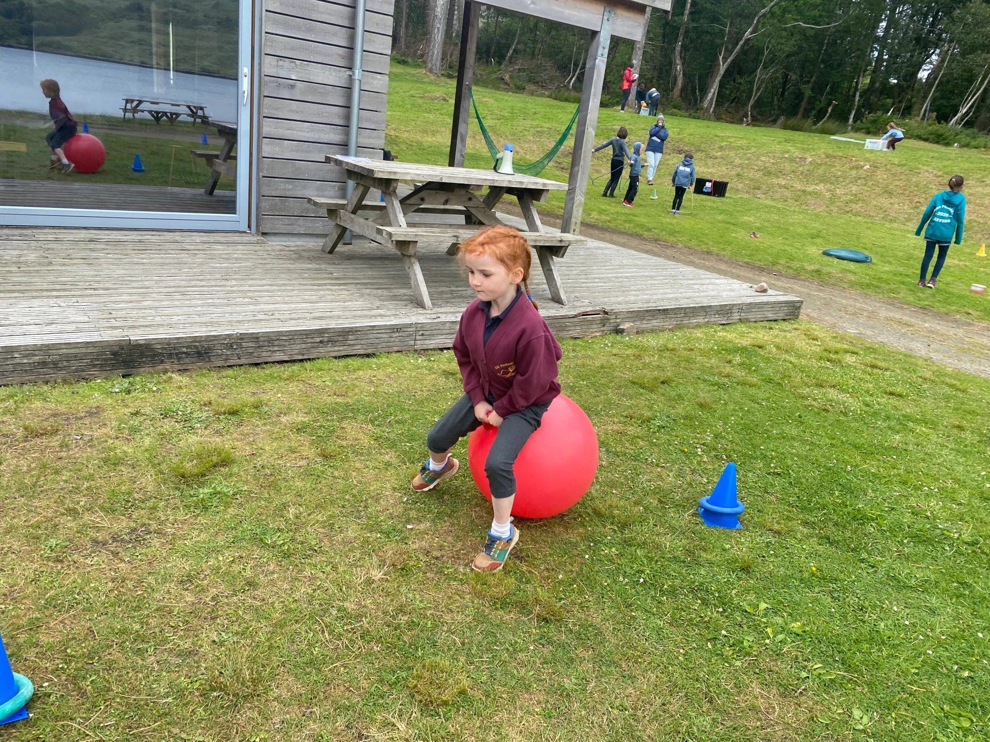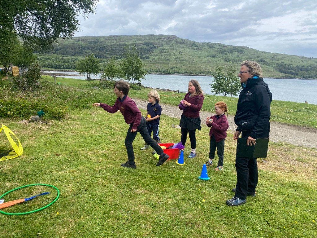 After being greeted by their Rùm friends, the children launched straight into a high-energy round robin tournament. Each station offered a different challenge, from the Space Hopper Dash (navigating a tricky cone course) to the Beanbag Target Challenge, Team Skipping, Sponge and Water Relay, and the ever-popular Hockey Smash, where pupils had to score a goal with precision and power.