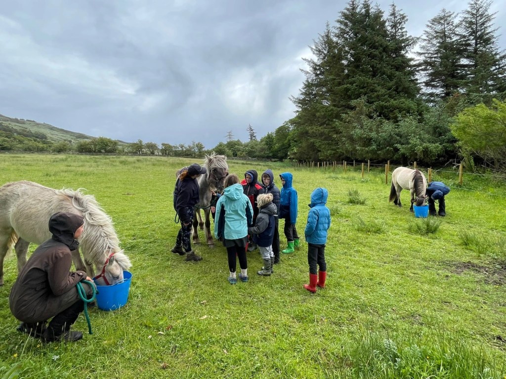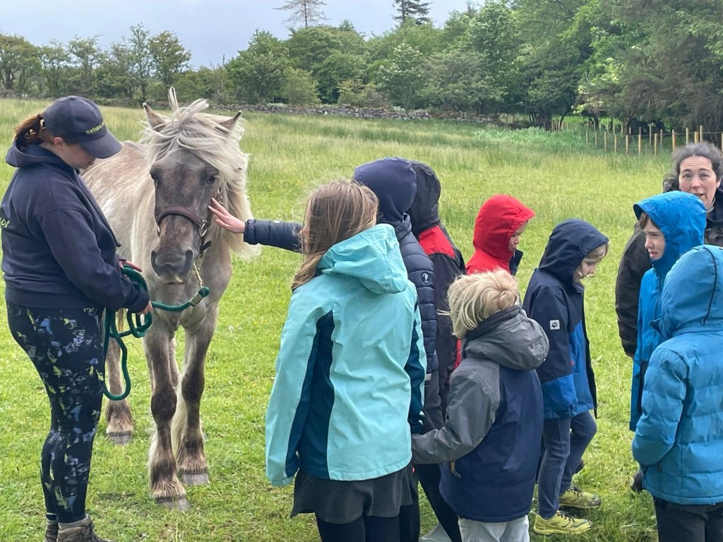 After breakfast, we set off for a visit to the NatureScot stables, where the children got to meet the Rùm ponies up close. The NatureScot team gave us a fascinating insight into pony care and stable life on the island – from how the ponies are groomed to the roles they play in managing the land. Pupils were able to ask questions, explore the equipment, and pet the famous Rùm Ponies. It was a brilliant, hands-on session and a lovely chance for the children to learn about some of Rùm’s most iconic residents.
