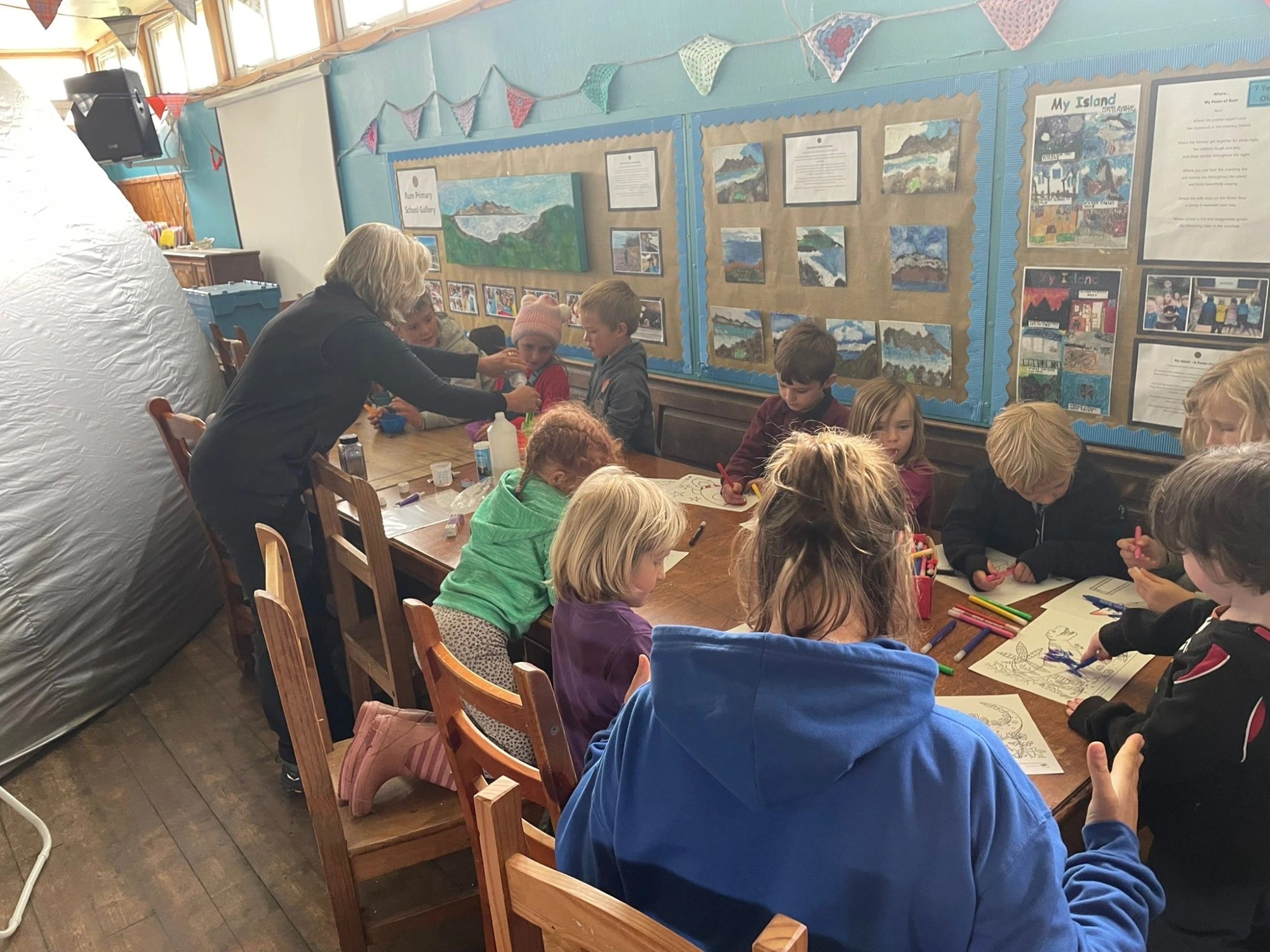 After lunch at the bunkhouse, the planetarium transformed into our very own cinema for a special screening of Inside Out 2, giving everyone a chance to relax and enjoy some down time together. During the same session, some Rùm residents kindly shared their poetry, and our pupils’ “My Island” posters were proudly on display in the hall for everyone to see.